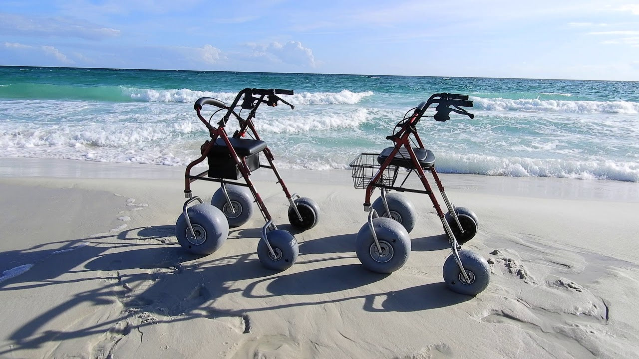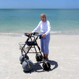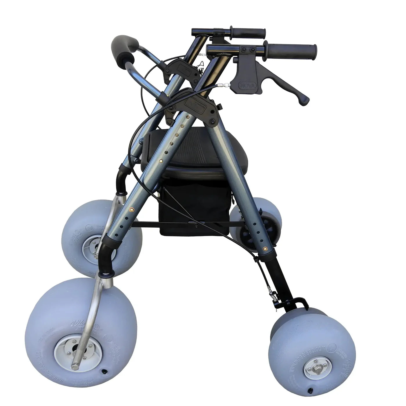 Equipped with large wheels resistant to sand and salt damage, this walker glides smoothly over uneven surfaces.