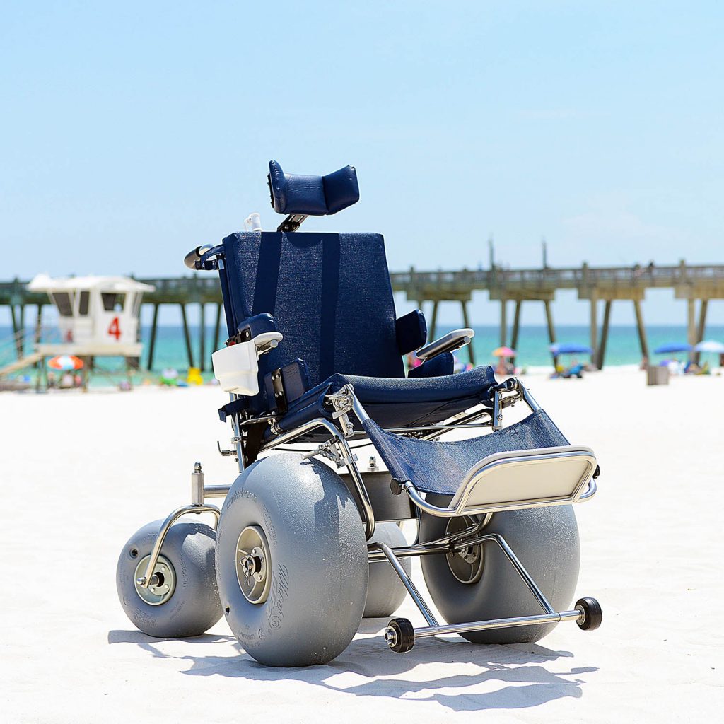 Hand-built in the USA using high-quality stainless steel, the DeBug Beach Wheelchair is available in multiple configurations, including static seating, tilt-in-space, and reclining back options.