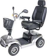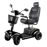 The Drive Prowler 4-Wheel Scooter is a heavy-duty mobility solution designed for comfort and durability. With a weight capacity of up to 500 lbs., this scooter features a high-back captain's seat with a 360° swivel for easy access, a full lighting package for enhanced visibility, and front and rear suspension for a smooth ride.