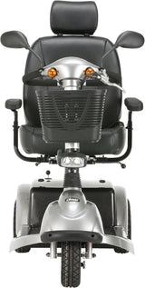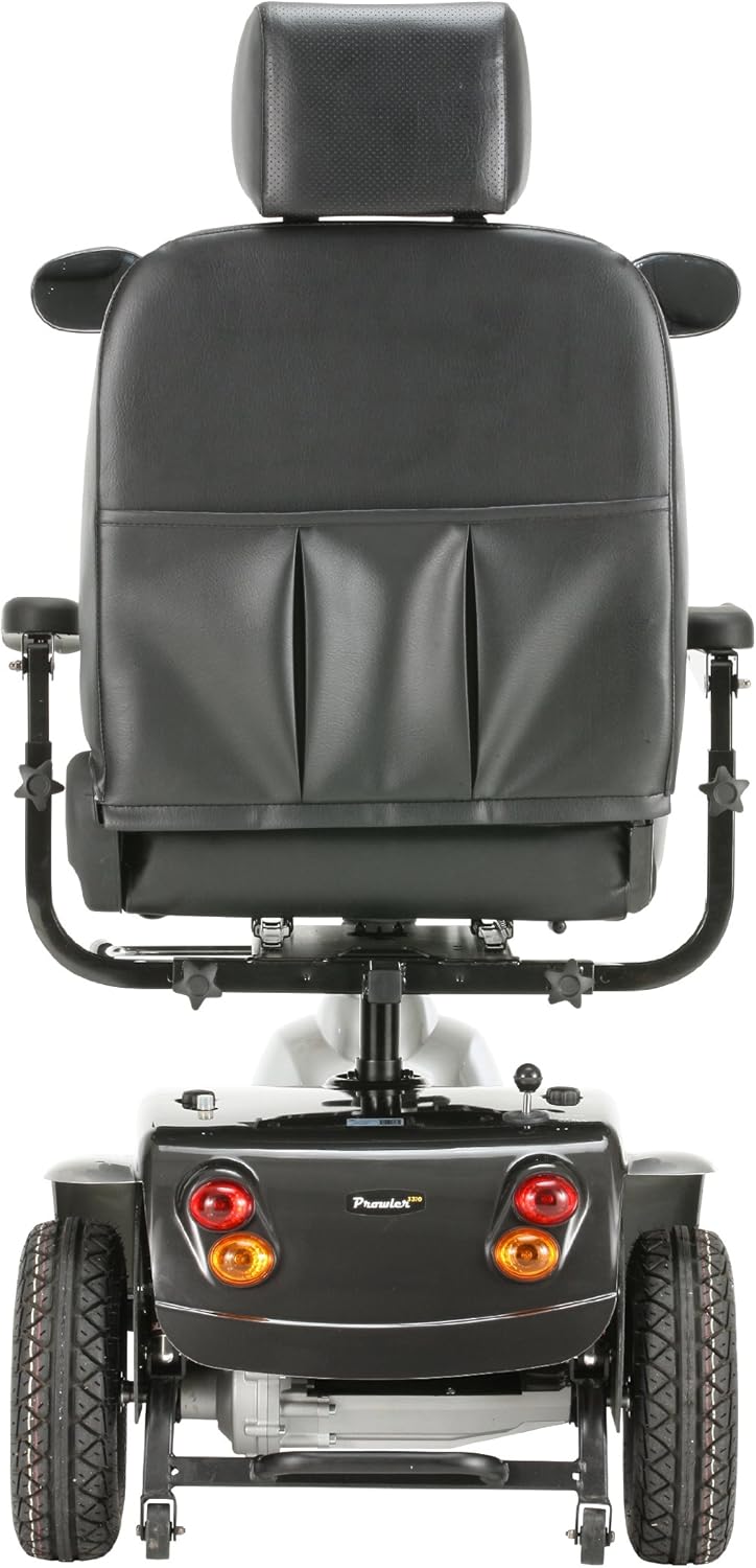 The Drive Prowler is equipped with large pneumatic tires and an impressive 5-inch ground clearance, making it perfect for outdoor use. It reaches a top speed of 7 mph and offers a drive range of up to 23 miles on a single charge. With a user-friendly delta tiller, hand-operated drum brakes, and a sturdy frame, this scooter ensures both comfort and safety.