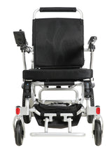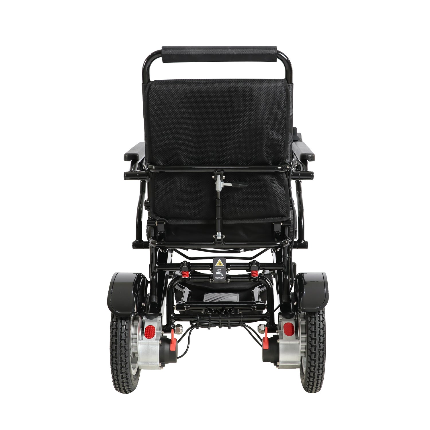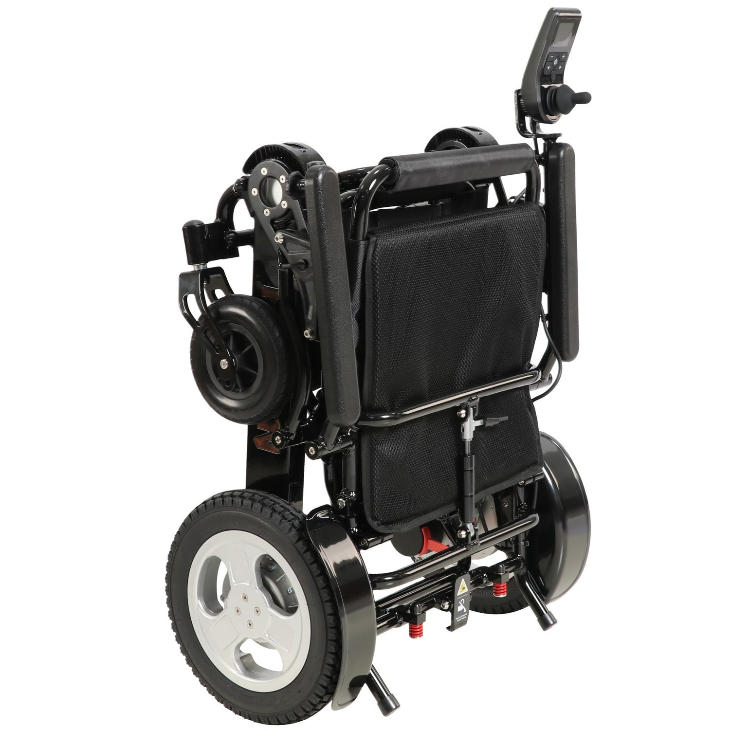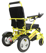 Weighing just 50 lbs but supporting up to 400 lbs, this power wheelchair features a reclining backrest, dual lithium batteries, and a lightweight aircraft-quality aluminum frame.