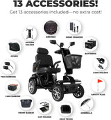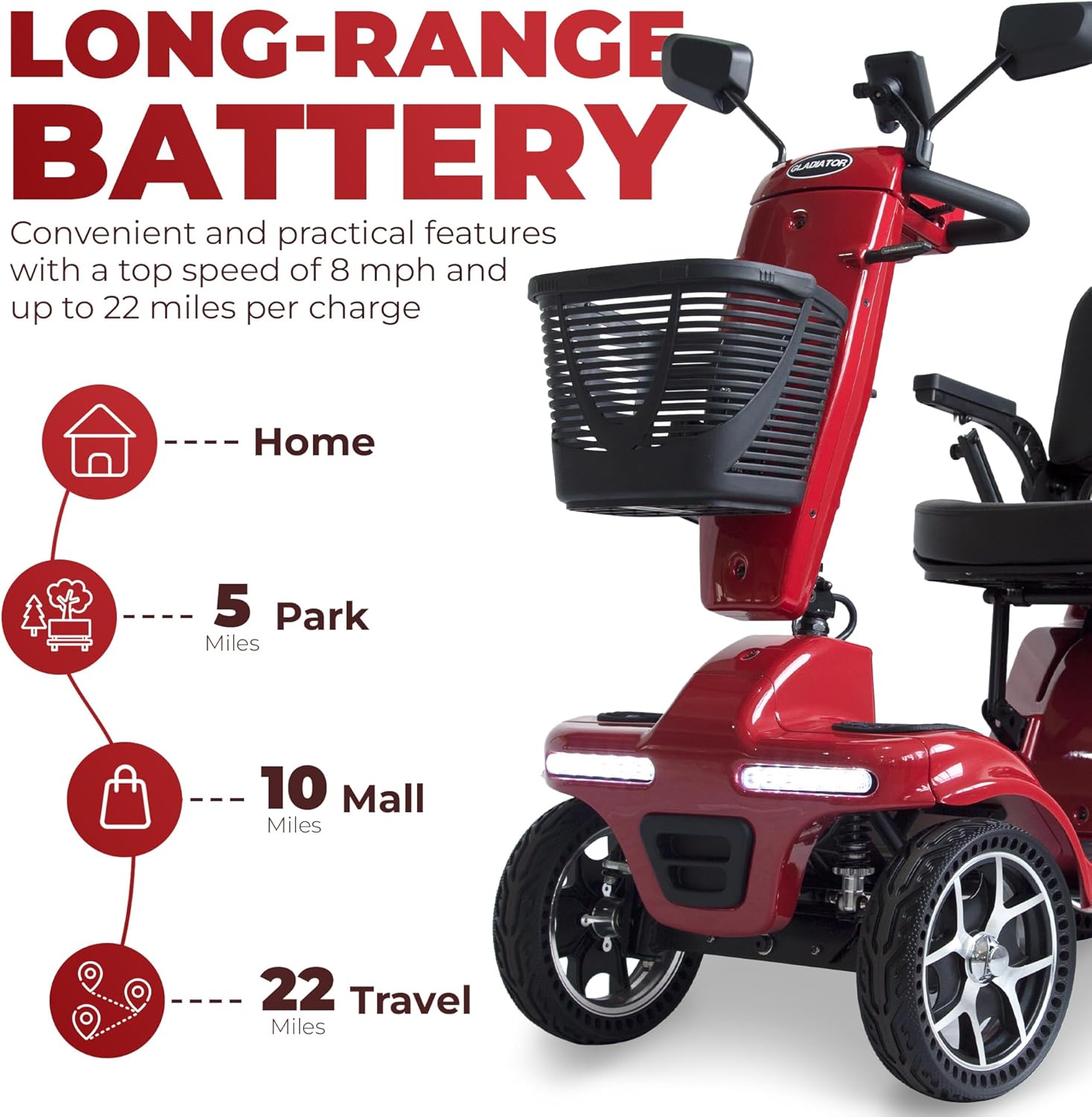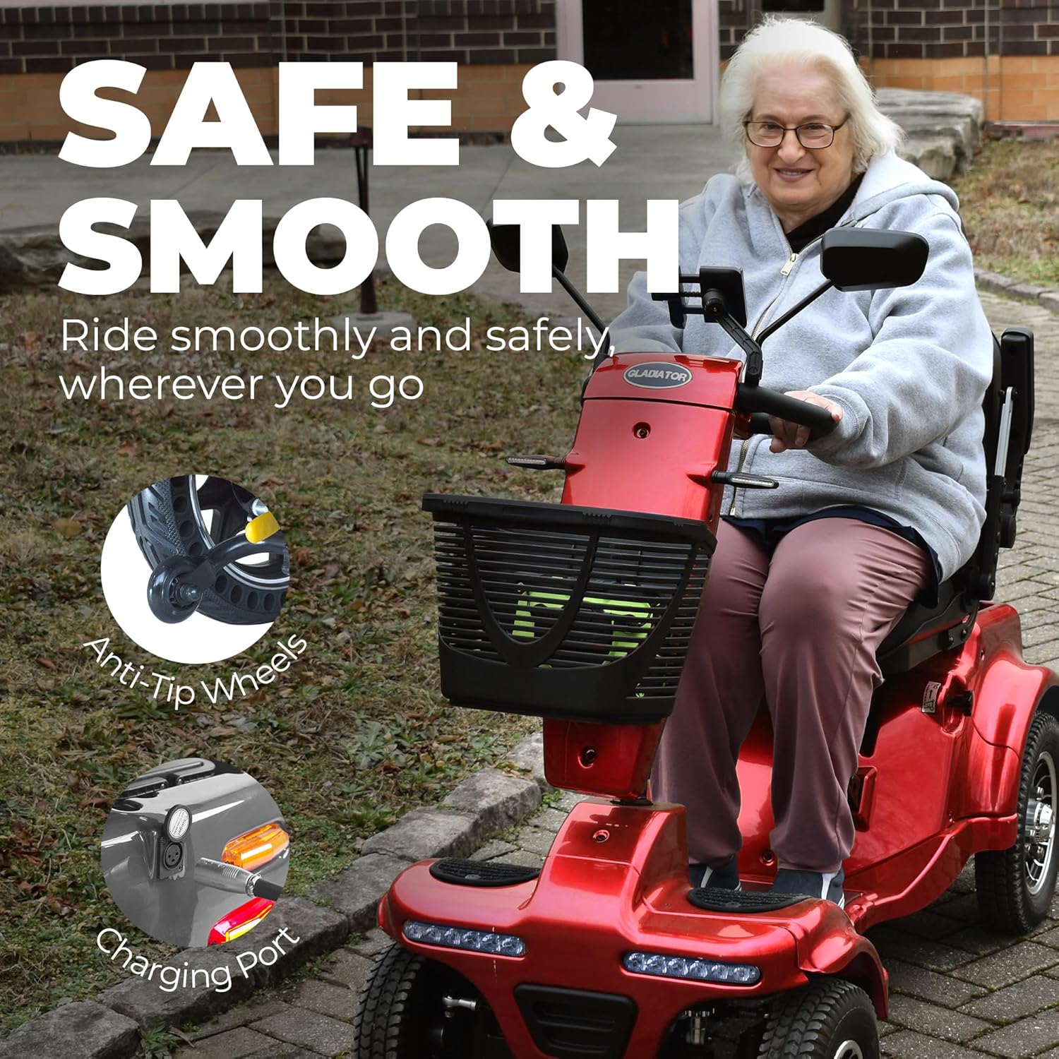 The Gladiator 4-Wheel Mobility Scooter by Discover Your Mobility is a heavy-duty, all-terrain scooter designed for superior comfort, durability, and performance.