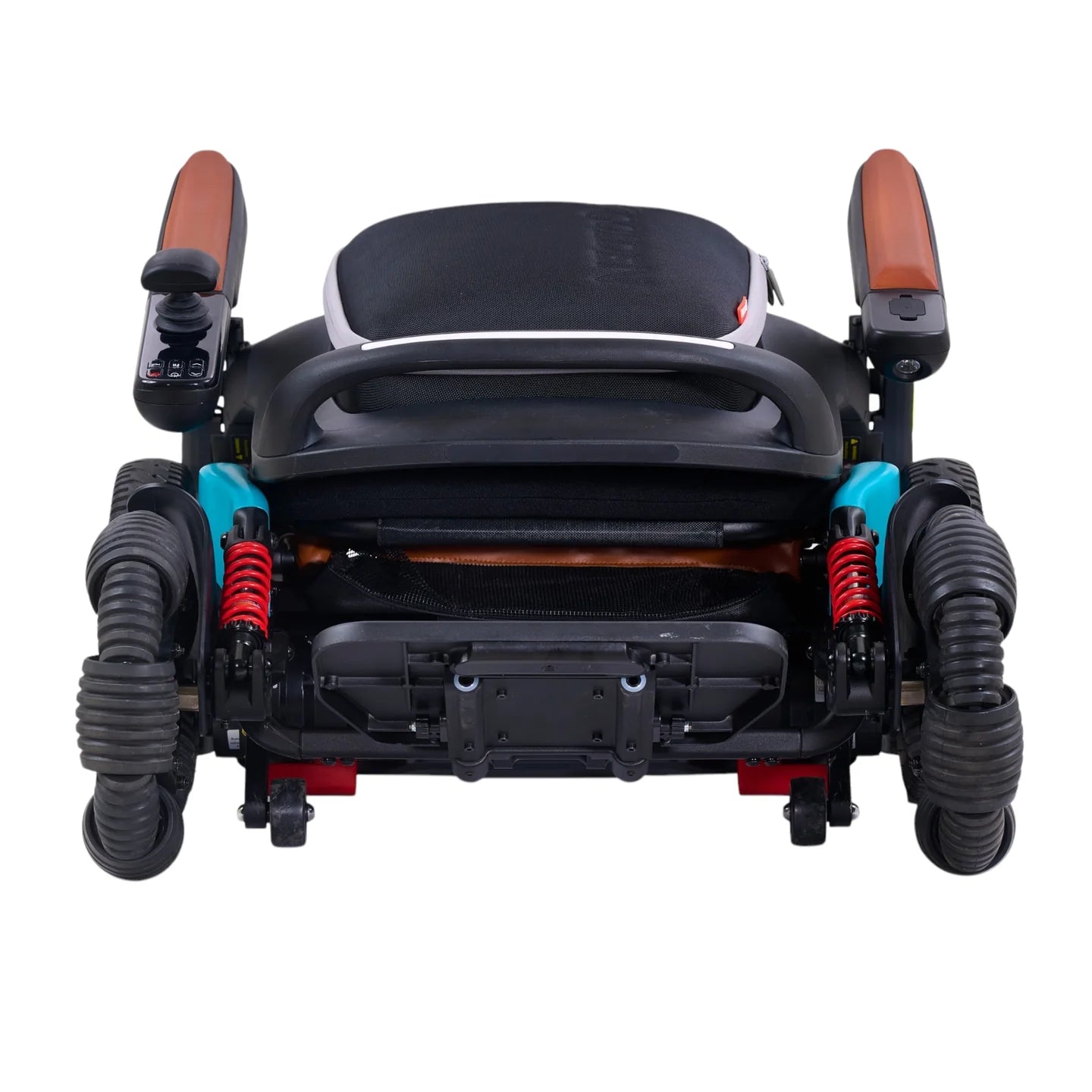 These wheels enable smoother forward and sideways rolling, allowing the chair to turn within a tighter radius, making it ideal for compact indoor spaces. Users will also appreciate the improved leg and foot room, offering better positioning and comfort without the constraints of a standard power chair.