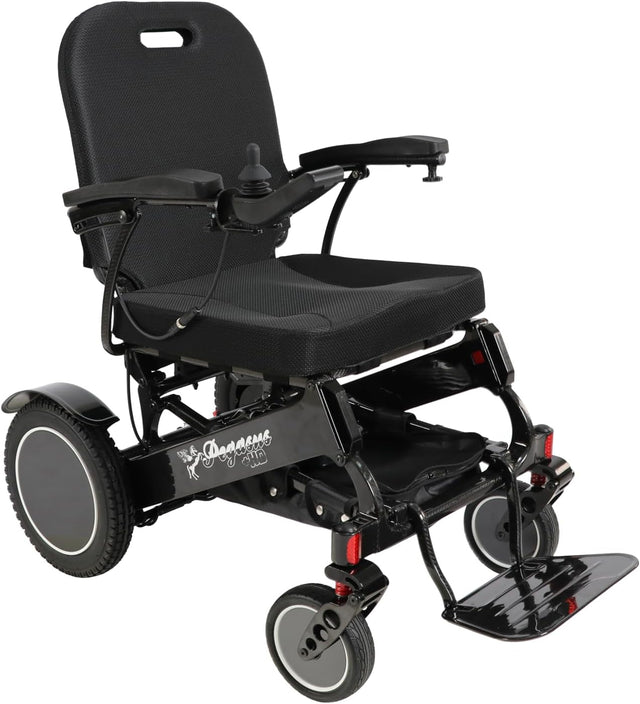 The Pegasus Plus HD Bariatric Power Wheelchair is an ultra-lightweight, foldable wheelchair with an impressive 440-pound weight capacity. Made entirely from carbon fiber, it weighs only 50 pounds, making it the lightest bariatric power wheelchair with this level of weight support. Designed for convenience, it folds down to just 12.5 inches wide, fitting easily into car trunks or even as carry-on luggage for air flights.