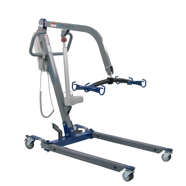 The Protekt Power Lift by Proactive Medical is a versatile and compact patient lift featuring a low-profile base, suitable for both home care and institutional settings.
